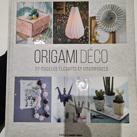 Kaksi origamisettiä. Kumpaankin settiin sisältyy yksi tai useampi englanninkielinen ohjekirja ja origamipaperia. Kumpikin setti on avattu ja niistä lienee käytettäneen yhteensä alle kymmenen paperiarkkia.
