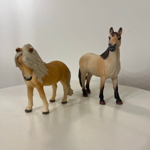 Schleich hevoset 6€/kpl (+ mahd. postikulut). Keskimmäisellä jalat hieman vääntyneet, muuten kaikkien kunto on hyvä