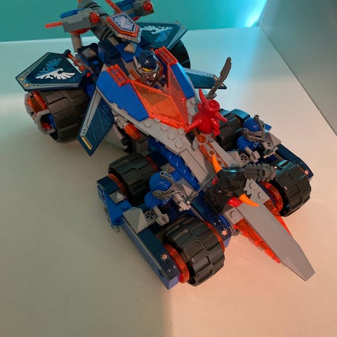 LEGO Nexo Knights leikkisetti sisältää sinisiä ja punaisia rakennuspalikoita, jotka muodostavat futuristisen lentävän ajoneuvon. Setti sisältää ohjaamon ja erilaisia yksityiskohtia, kuten siivet ja asevarustuksen. Alusta saa liikuteltua mekanisminsa ansiosta leveämmäksi ja kapeammaksi. Mukana sininen kilpi, mutta setistä puuttuu kaksi muuta pientä kilpeä. Sopii leikkeihin ja kokoelmiin.