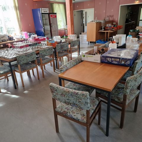 Kaikki kerralla mielumin. 6 kpl pöydät ja jokaisen pöydän kuuluu 6kpl tuolin