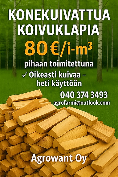 Myydään laadukasta kotimaista, konekuivattua koivuklapia.