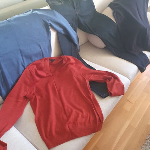 - käytetyt, hieman haalistuneet, collegehousut, toisesta reisitaskun läpästä puuttuu painonapin toinen puolisko -> tämä ei kuitenkaan näy, kun ”läppä” on alhaalla