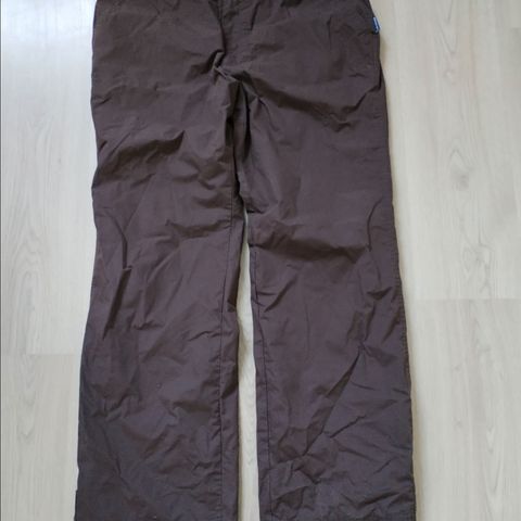 Ehjät ja siistikuntoiset ulkoiluhousut. Lahkeissa tarrat, joilla voi kaventaa . Taskuissa vetoketjut ja vyötäröllä kuminauhakiristys.
