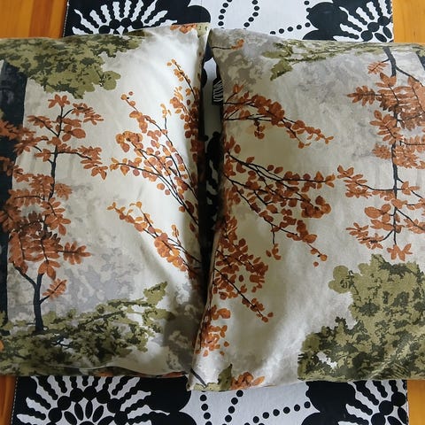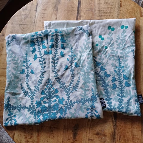 Kaksi samanlaista vetoketjullista tyynynpäällistä koko 43 x 43 cm