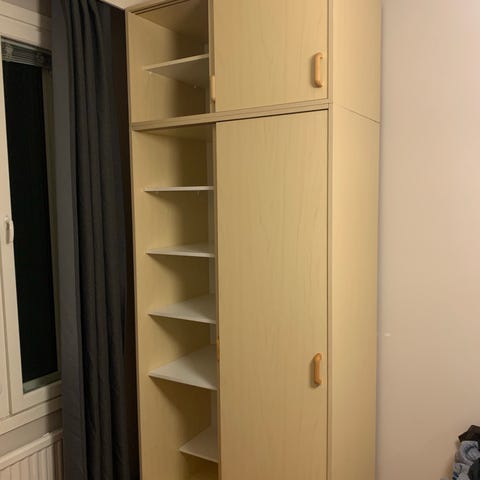 Iso ja tilava Ikean vaatekaappi valmiiksi koottuna. Ostettu vuosi sitten, joten ihan uutta vastaavassa kunnossa. Nyt lähdössä muuton vuoksi.