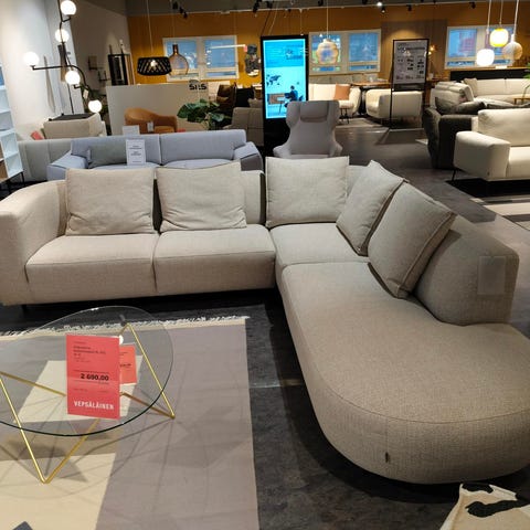 Tämä Adea Campin moduulisohvakokonaisuus Alcantara-kankaalla maksaa n. 6300 eur uutena.