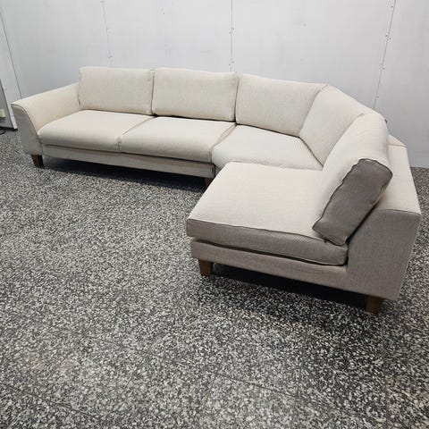 Adea Camp on suomalaista designia parhaimmillaan! Elämäntilanteen muututtua joudutaan myymään erinomaisessa kunnossa oleva kulmasohva. Vasemmalla on paksu käsinoja ja oikealla divaaniosa rentoon oleskeluun. Camp säilyttää ryhtinsä ja napakkuutensa eikä istuinosat mene kuopalle, kuten useimmissa sohvissa. Sohva on verhoiltu Alcantara-kankaalla, joka on verhoilukankaiden aatelia ja muistuttaa mokkanahkaa. Martindalen testissä Alcantara on saanut tulokseksi 100 000 ja sitä käytetäänkin kestävyytensä vuoksi julkisissa tiloissa. Se on helppohoitoinen ja hylkii tahroja ja haalistumista. Kangas on kauniin harmaa ja se on helppo yhdistää sekä lämpimiin että kylmiin sävyihin. Verhoilu on irrotettava eli sen voi tarvittaessa pestä. Sohvassa on pyöreät rosterin väriset jalat.