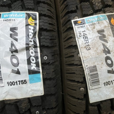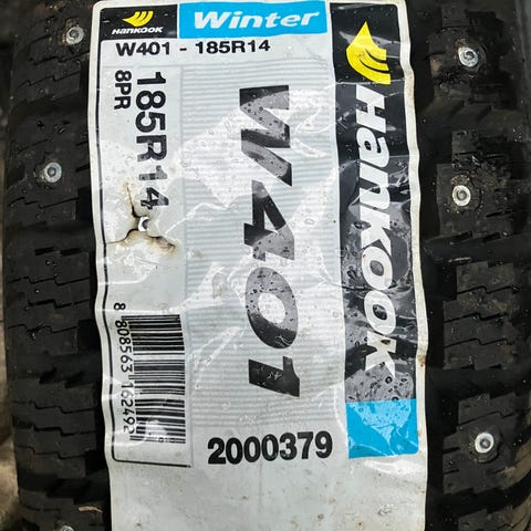 Yksittäinen ajamaton Hankookin jenkkirengas. Uusi, mutta varmaan riittävän vanha ostamaan kaljaa kaupasta. Unohtunut rengasvaraston perälle aikanaan. Nastoitettavissa, mutta ei ole koskaan nastoja asennettu. Lumivuorimerkinnällä eli on katsastuslaillinen.