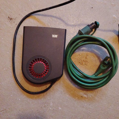 Sisätilanlämppärin pistoke ja kuvan johdot. H.20€