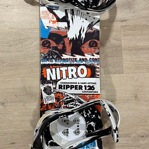 Hyväkuntoiset Nitro lumilauta 126cm ja kengät koko 37