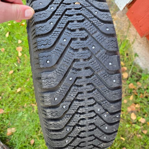 Yksittäinen ajamaton mutarengas. Uusi, mutta varmaan riittävän vanha ostamaan kaljaa kaupasta. Unohtunut rengasvaraston perälle aikanaan.