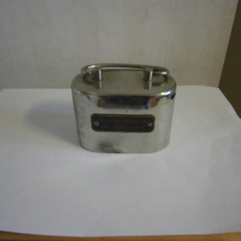 Musta, käytössä ollut metallinen säilytyslipas. Kulumia (näkyy kuvissa) sekä naarmuja pohjassa. 2 avainta. 5 lokeroa, lokerikon saa otettua irti, ja sen alle jää säilytystilaa.