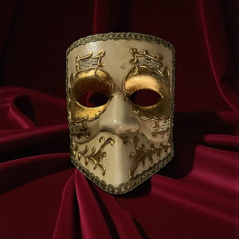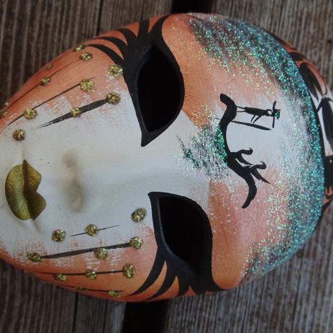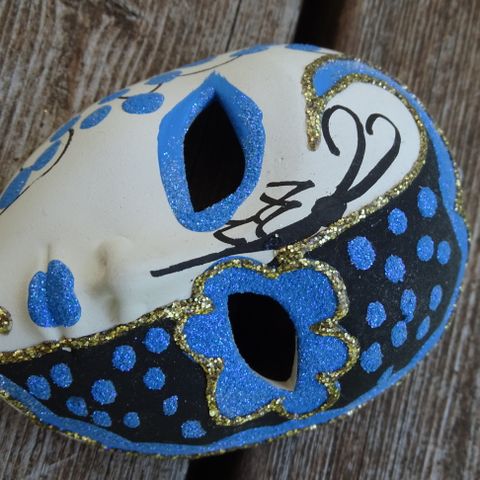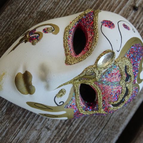 Venetsiasta tuotu koristenaamio, koko 8x6.5cm, ripustuskoukku takana, materiaali posliini.