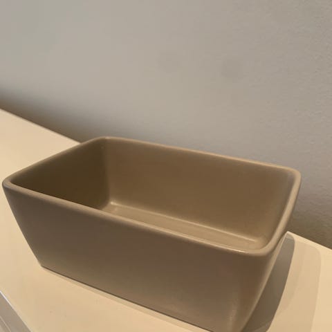 Ymmärtääkseni Pentikin tuotantoa oleva tarjoiluvati. Mitään tunnistetietoja en kuitenkaan vadista löytänyt. Sopii mainiosti näyttäväksi hedelmälautaseksi tai leipäkoriksi. Melko kevyt mutta silti tukeva.