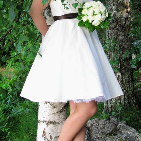 Myydään ompelijalla teetetty häämekko. Koko n.36. Ehjä ja siisti, kerran käytetty 1960-luvulla.