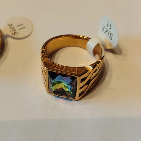 Kantasormus, kullattu teräs vihreä kivi 20,5mm, UUSI