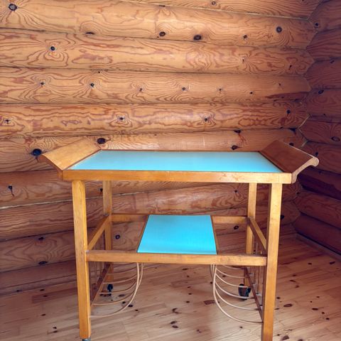Myydään tyylikäs tanskalainen vintage-pöytä, jossa kaunis laattakansi ja pyörät. Laadukas ja tukeva rakenne, valmistettu Tanskassa (leima RH – Made in Denmark). Sopii erinomaisesti sivupöydäksi, tarjoiluvaunuksi tai sisustuselementiksi.