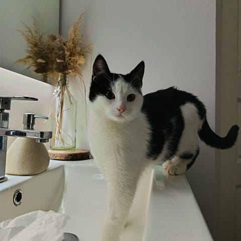 Mustikka on todella Reipas ja tykkää seurailla mitä ihmiset puuhaa ja tietysti leikkiä ja noutaa leluja. On tottunut ulkoilemaan valjaissa ja tulee hyvin toimeen pienen tutustumisen jälkeen esim koirien ja muiden kissojen kanssa:)