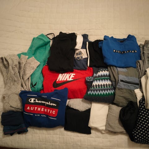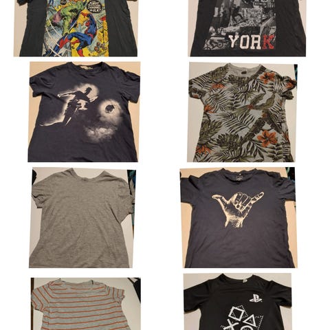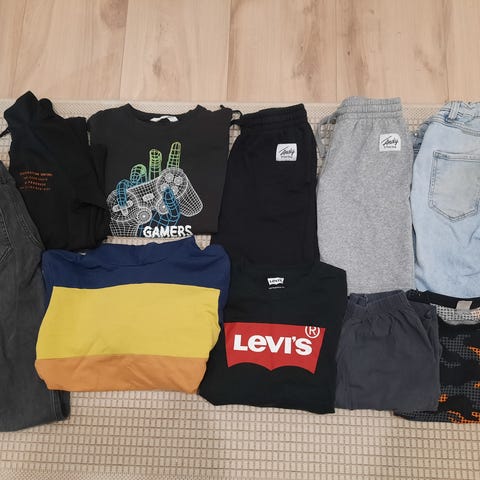 Myydään vaatepaketti pojalle, vaatteet kokoa 140-164. Huppari, 2 t-paitaa, 2 farkut skinny fit, suorat housut, collegehousuja ja Adidaksen verkkareita. Vaatteet ehjiä, yksien verkkareiden takasaumassa halkeama. Kissatalous joten karvoja saattaa löytyä.