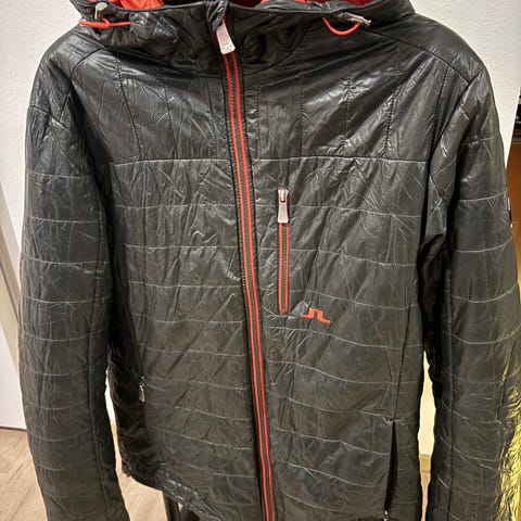 J. Lindebergin tummansininen kevyttoppatakki, miesten malli. Kokolapussa lukee L, mutta on pientä kokoa. Sanoisin, että takki on enemmän m-kokoinen. Takissa on huppu, jonka saa kokonaan kiinni. Takin edessä on pientä jälkeä, näkyy viimeisessä kuvassa. Luonnossa jäljet eivät näy niin selkeästi.