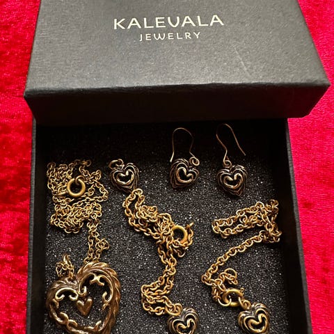 Kalevala, erilaisia Talon sydän -koruja, pronssi