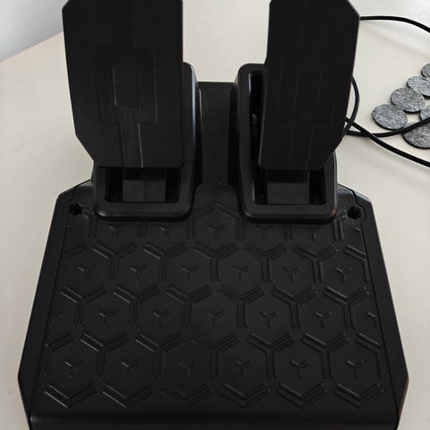 Myytävänä oikein siistit ja täydellisesti toimivat Thrustmaster T3PA-GT polkimet.