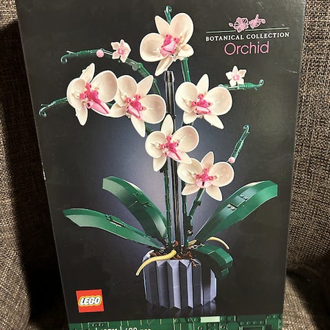 Lego Botanicals sarjan orkidea. Koottu kerran ja sen jälkeen ollut koristeena. Ohjeet ovat tallessa mutta alkuperäinen laatikko hävitetty. Lähetetään pölystä puhdistettuna osissa. Saa mielellään myös noutaa.