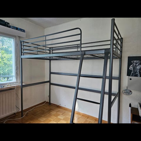 Myydään puinen hylly, joka on ollut osa lasten parvisänkyä.