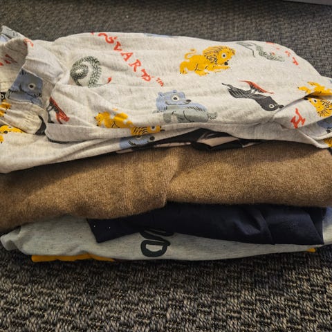 Uusia vaatteita 2x trikoopaitaa, yöpaita ja trikoot 120-130.