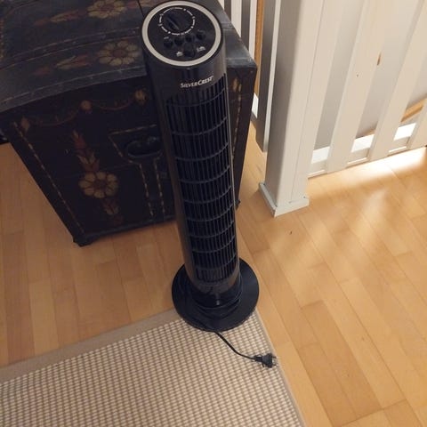 Kesällä ostettu, ylimääräiseksi jäänyt helppokäyttöinen ja kevyt tornituuletin. Noin 70cm korkea