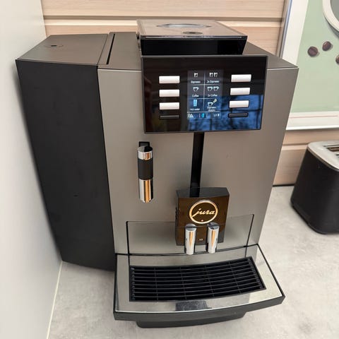 Keväällä 2025 ostettu verkkokauppa.com Jura E6 Platina EC (Easy Cappuccino). Takuu voimassa tammikuu 2027 asti.