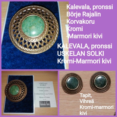 Börje Rajaliinin suunnittelemat pyöreät korvakorut, vihreä kivi 39.25 + 2.75 e