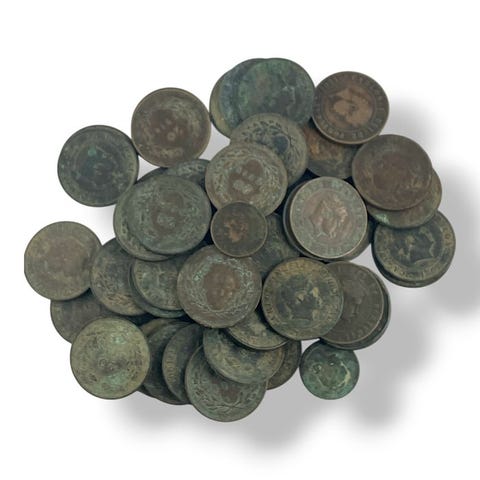 Portugali. D. Luís, D. Carlos II e D. Manuel II. Lote de 53 Moedas em Cobre de