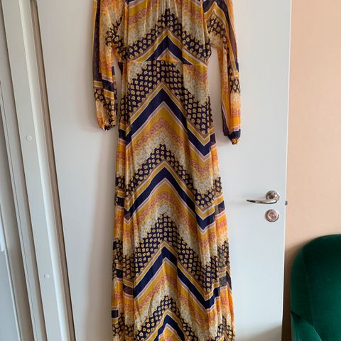 Vintagemekko ohutta kamelinruskeaa villakangasta, valmistaja Stockmann. Vuorillinen, takana vetoketju ja tamppi, joka on napeilla kiinni, ja jonka saa avattua pukemisen ajaksi.