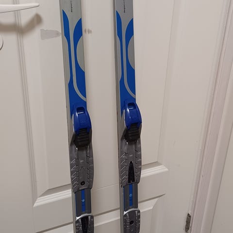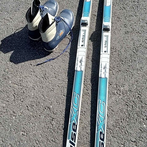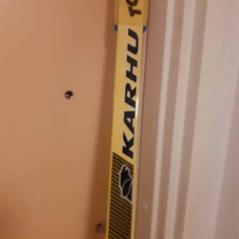 Myydään kuvan mukaiset Karhun sukset ja Salomonin siteet, suksien pituus 205cm. (408)
