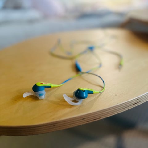 Bose urheilukuulokkeet sininen väri, langallinen malli, sopii aktiiviseen käyttöön. Mukana kuljetuskotelo ja vaihtoelementtejä.