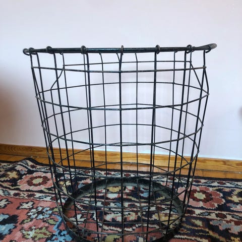 Vintage roskakori, vuosilukua en osaa sanoa. Hyvässä kunnossa, mutta pohjassa kulumaa ja sisällä tarha.
