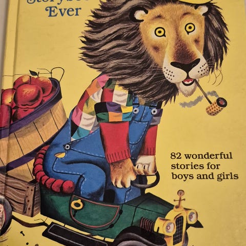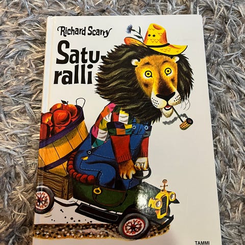 Lasten satukirja Richard Scarry Saturalli, kaunis kuvitus. Monta satua samassa kirjassa. Kontaktoitu. Käytetty kunto.