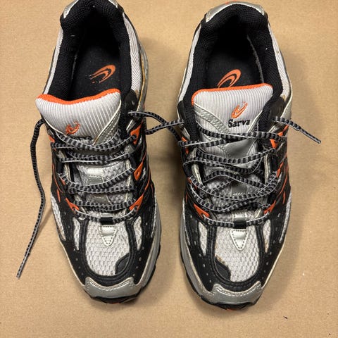 Hyväkuntoiset ja siistit nastakengät. Ainut moite toisen kengän kantapäässä pientä moitetta pinnassa. Ei vaikuta käyttöön vain ulkonäköön.