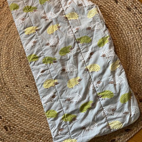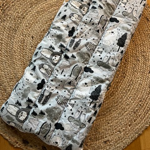 Äitiyspakkauksen makuupussi vuodelta 2021. Hyvässä kunnossa ja siisti. Mutta sisäpuolella pieni tahra, josta kuva. En tiedä lähteekö sappisaippualla pois. Normaalissa pesussa ei lähtenyt.