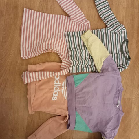 Annetaan kuvan pitkähihaiset puserot. Yksi kokoa 110 ja muut 122cm.