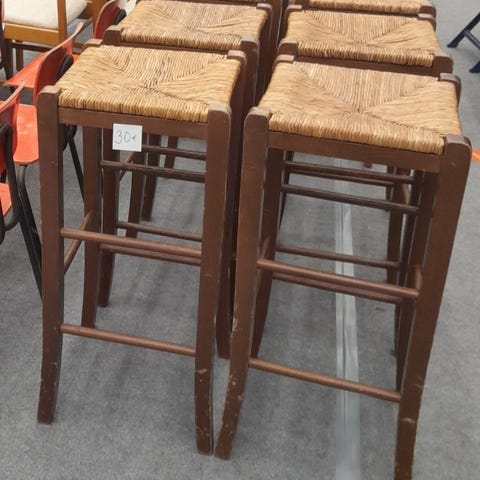 Puiset baarijakkarat, jossa rottinki istuinosa. 50€ yhteensä molemmat.