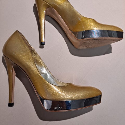 Käyttämättömät Italiasta ostetut todella erikoiset design-korkokengät, joissa kantaosa on tehty kimaltavista paljeteista ja loppuosa on leopardikuvioista kangasta. Koko 36. cm:n korko. Jääneet käyttämättömiksi, koska olivat minulle aavistuksen liian suuret. Avokärki. Myynnissä Lohjalla, mutta kulkeutuvat ilman postimaksua omien menojen mukaan Kamppiin, Espoon Ikealle ja Espoon keskukseen.