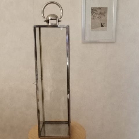 Korkeus 38 cm, sisällä hieman ruostetta pohjassa. Ei ollut karhunkieltä olis hangannut pois. Voi tuunata vaikka linnun pöntönkin korottaa alareunoja ja ottaa lasit pois. Nouto. On verkahovin lähellä.
