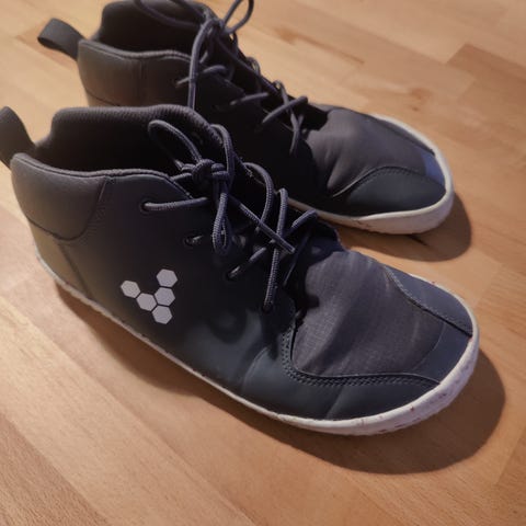 Myydään Vivobarefoot välikausikengät kokoa Junior 36. Olleet melko paljon käytössä. Pintalikaa ja hiukan kulumaa. Ei reikiä kengässä (tarranauhan sisäpuolella kulumakohdat) eikä pohjassa. Kantapäät ehjät. Nouto tai postit ostajalle.