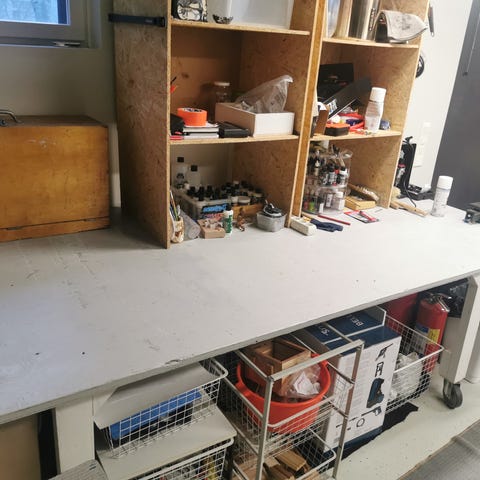 Puinen ,todella tukeva n.4m pitkä työpöytä ,leveys n.90cm, ruuvipenkillä,tilava ala hylly,helppo lyhentää tai tehdä vaikka useampi pöytä, nyt halvalla pois 120e
