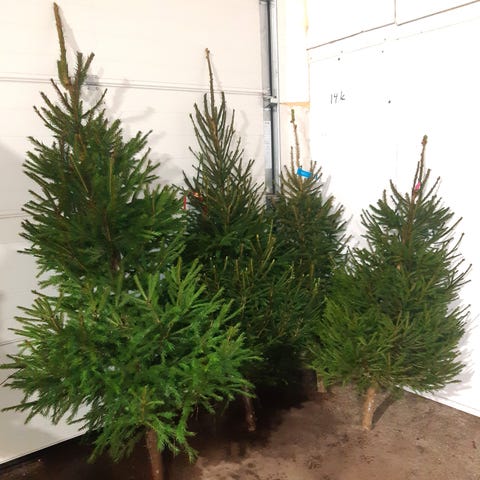 Metsäkuusia, taimikosta harvennettuja. Myös jätkänkynttilöitä saatavilla