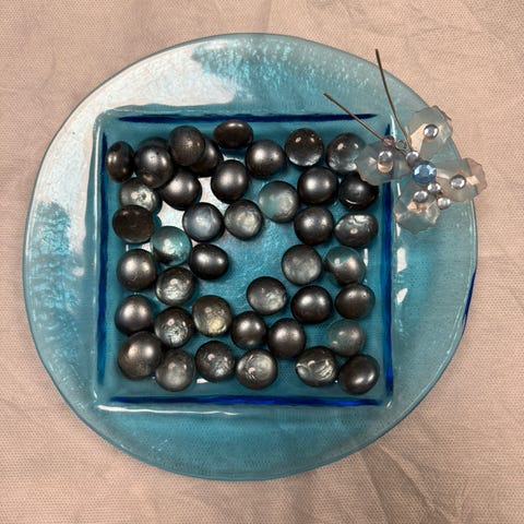 noin 20 cm käytetty lasialusta jossa pienet noin 1 cm jalat, käytönjälkiä, ja punainen ruusukynttilää. kynttilä on tummemman punainen mitä kuvasta näkyy, valo vääristää väärin. kynttilän tietoja kuvassa.