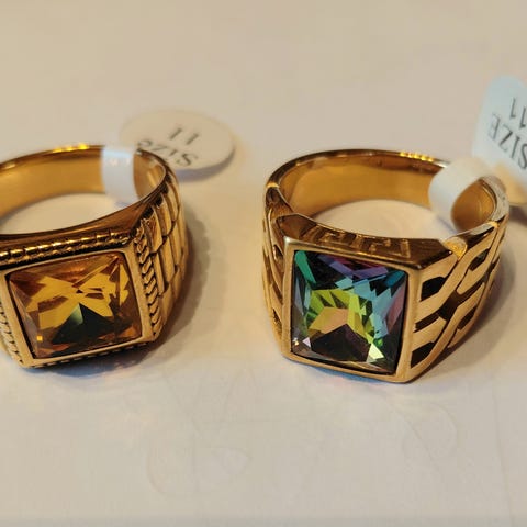 Kantasormus kullattu teräs 1 kpl, Oranssi kivi , 21mm