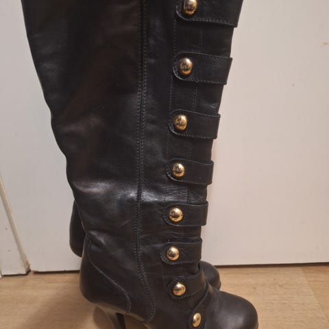 Hennon roosan väriset nilkkapituiset saapikkaat. Koko 36. Tyylikäs muotoilu. Terävä kärki, nilkassa ja kärjen sivulla solki- ja metallikoriste. Piikkimäisen kapea hopeanvärinen korko. Erinomaisessa kunnossa. Sivulla vetoketjukiinnitys alas saakka eli helppo saada jalkaan. Malli sopii kapeajalkaiselle. Myynnissä Lohjalla, mutta kulkeutuvat ilman postikuluja omien menojen mukaan Kamppiin, Espoon Ikealle ja Espoon keskukseen.